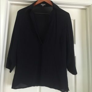 Haven't Worn in a while because slightly too small on me but I think sleeves are 3/4. I used to wear w Cami underneath and beautiful w slack or jeans and dress up w gold or silver jewelry.
