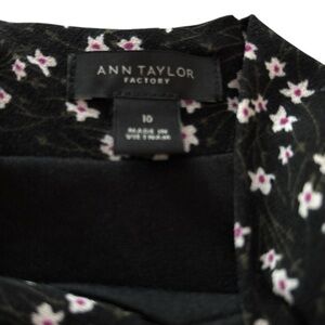 ANN TAYLOR shift dress, size 10, black, small florals,short sleeves, tie neck