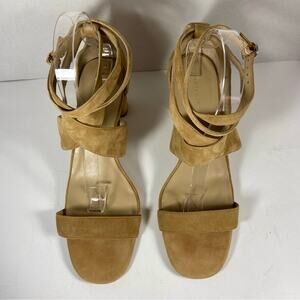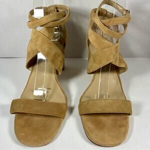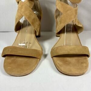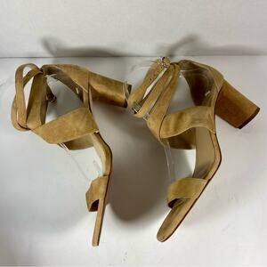ANN TAYLOR women heels 9 tan suede strappy block square toe bridal date night