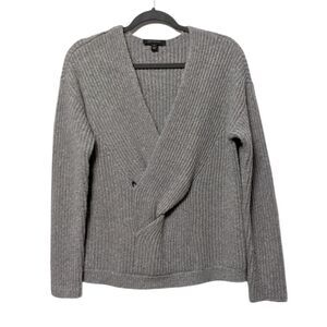 ANN TAYLOR Gray Ribbed Wrap Knit Wool Alpaca Jumper Sweater