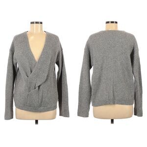 ANN TAYLOR Gray Ribbed Wrap Knit Wool Alpaca Jumper Sweater M