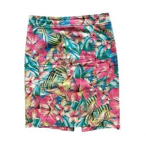 ANN TAYLOR Loft Tropical Floral Hibiscus Bird Pattern Stretch Pencil Skirt Size 2