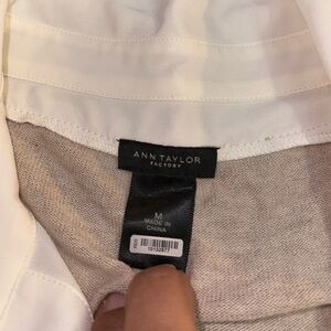 ANN TYLOR Beige V-Neck Sweater with White Collar