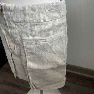 Ann Taylor mini skirt. Deep front pockets and front zipper. Made of linen, cotton and spandex. Inner lining. Good condition.