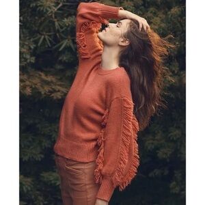 Ann Taylor Fringe Sleeve Sweater Pucker Pink. Size M true to size. In excellent condition. No holes or stains.