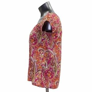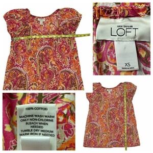Ann Taylor LOFT Short Puff Sleeve Paisley Blouse Women's Size XS