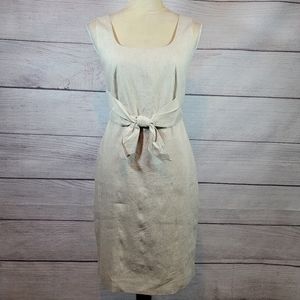 𝅺ANN Taylor Linen Blend Tie Front Sheath Dress Tan Size 2