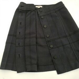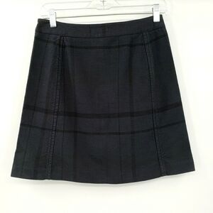 Ann Taylor Loft Buttoned Navy Blue Black Striped Cotton Skirt, Size 4P.