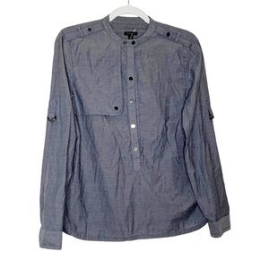 ANN Taylor grey/blue long sleeves cotton top with front flap. Size 4