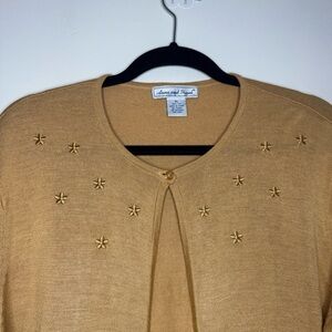 ANNA AND FRANK VTG Stars Embroidered 100% Silk Knit Buttercup Yellow Cardigan