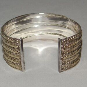 * Wide cuff sterling silver bracelet made of welded together and twisted dotted bangles (6).
