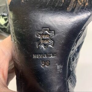 ANNA BIAGINI Patent Leather Reptile Print Chunky Heel Bootie