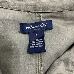 Women’s Anna Cai 100% cotton jacket with gathered bottom and raw hem. EUC, Size small