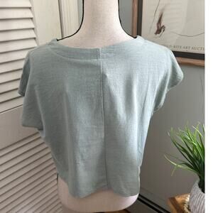 ANNA KACI Womens Top MEDIUM Green Cropped Minimalist Lagenlook Monochrome Spring