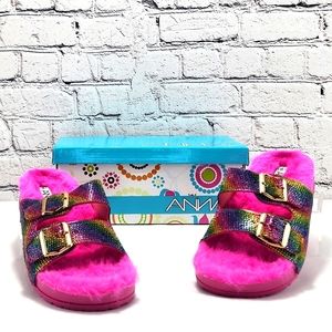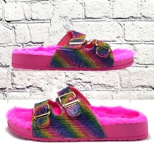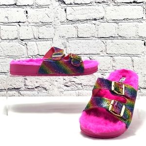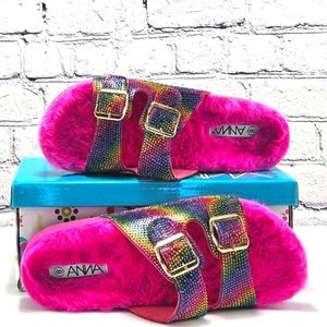 ANNA – NWB, sandals, furry, rhinestone, rainbow, size 8
