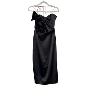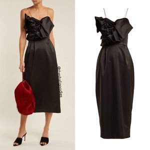 ANNA OCTOBER Ruffled Satin Midi Dress Black