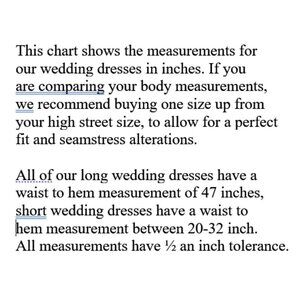 SIZE: UK 16 size 12 in US sizing. Dress was purchased in Scotland has a lot of give because it’s a corset style.