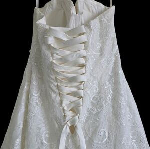 ANNA SORRANO "SUZETTE" STRAPLESS WEDDING GOWN WITH CHANTILLY EYELASH HEM