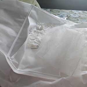 - Includes zippered storage/travel cover. Veil and both types of shoulder straps located in back zip pocket.