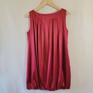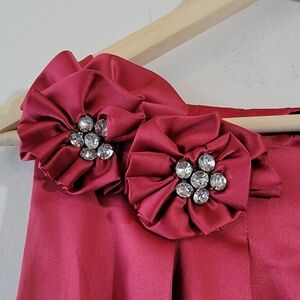 ANNA SUI Red Pleated Bubble Tank Sateen Dress Sz 4 Floral Beaded Appliqué Party