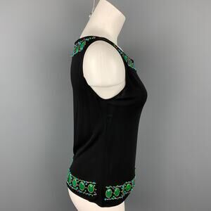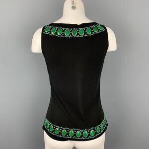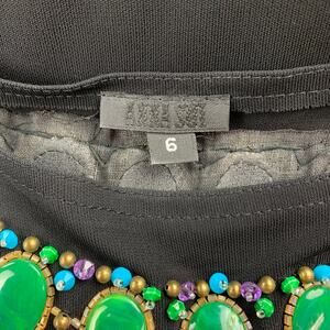 ANNA SUI Size 6 Black Beaded Rayon Tank Dress Top