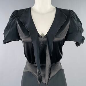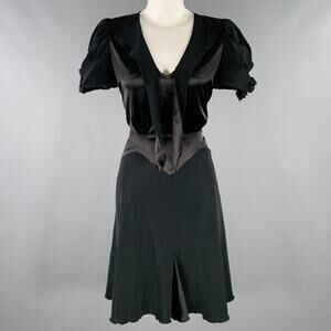 ANNA SUI Size 6 Black Polyester Mixed Fabrics Short Sleeve Cocktail Dress
