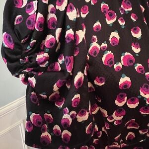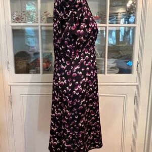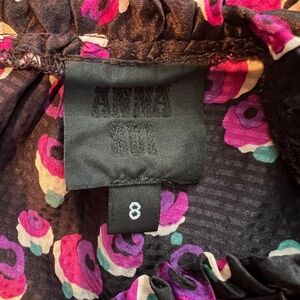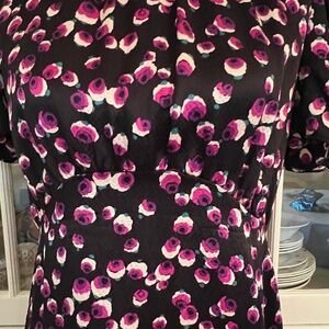 ANNA SUI Vintage Silk Dress, Size 8, Black & Purple Flower Petals, Early 2000s!