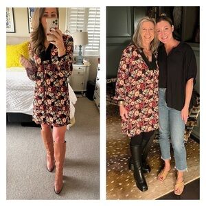 ANNA SUI black floral dress size 2 Larkspur Fields oversized 90s Y2K retro shift