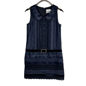 ANNA SUI x TARGET DROP WAIST INKY BLUE BLACK COQUETTE VELVET LACE SHIFT DRESS