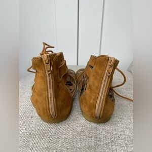 ANNA Sweden Leather Strappy Tie Sandals Tab Brown Boho Beach Size 7.5