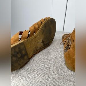 ANNA Sweden Leather Strappy Tie Sandals Tab Brown Boho Beach Size 7.5.