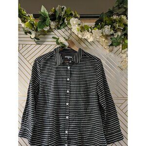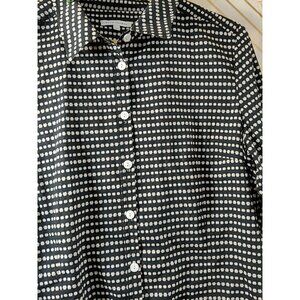 ANNA THOMAS Women's Button Up Collared Blouse Navy Blue White Cotton Size 14