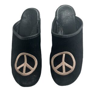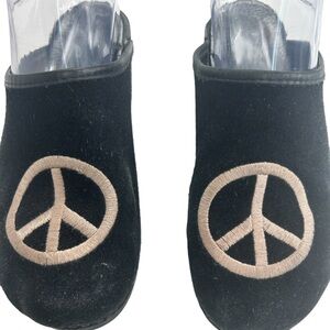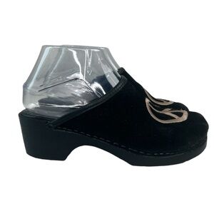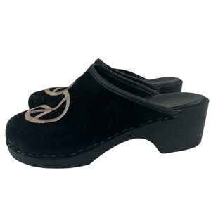 ANNA by Swedish Clogs Black Suede Embroidered Peace Slip On Mule Women SZ 37/6.5