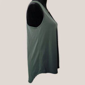 ANNABELLE Forest Green Top with Gold Bar Keyhole V-Neck | Stretchy Blouse