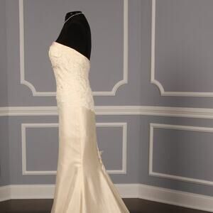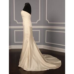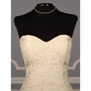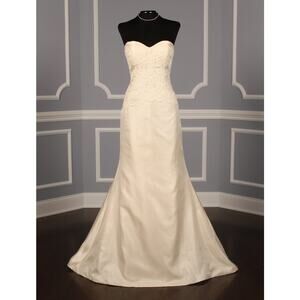 ANNE BARGE Bridal Wedding Dress Ivory Silk Lace Strapless Sheath Morelle Gown 10