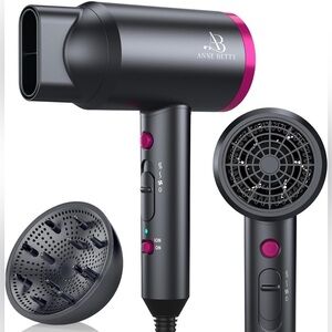 ANNE BETTY Ionic Hair Dryer W/ DiffuserBlow Dryer Fast-Drying Hair Dryer Nozzle
