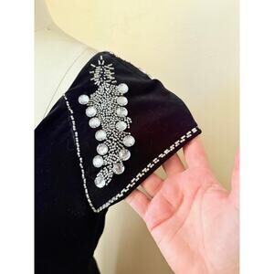 ANNE Black Maxi Women's Dress Beaded Shoulder Formal Evening Gown Size 10