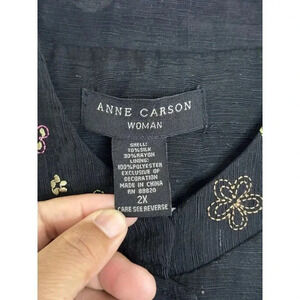 ANNE CARSON Women's 70% Silk Artsy Embroidered Floral Beaded Jacket Cardigan 2X