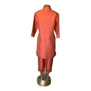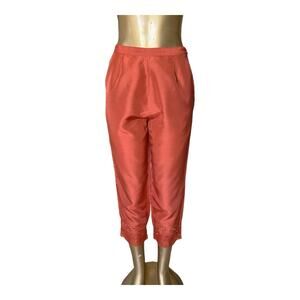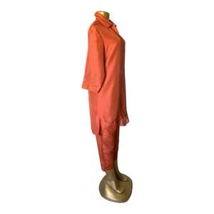ANNE CARSON Womens Size Small 6 Embroidered Burnt Orange Silk Shirt Pants Set
