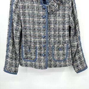 ANNE CARSON jacket blazer silk nubby boucle broach pockets office blue petite PL