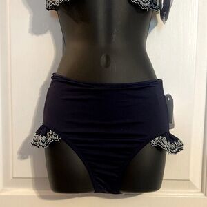 Navy with ruffled embroidered eyelet details