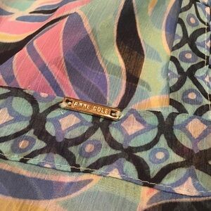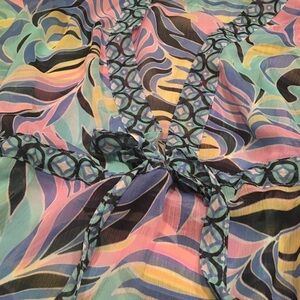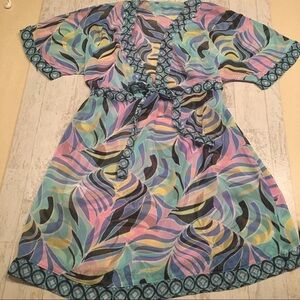 ANNE COLE Swim Coverup Dress Sheer Lightweight XS Mod Abstract Beach Vacation Flowy Summer