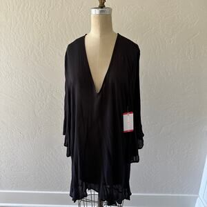 ANNE COLE | Women's Black Flounce Tunic Swim Cover-up Dress NEW Size XS/S Boho