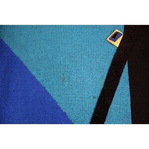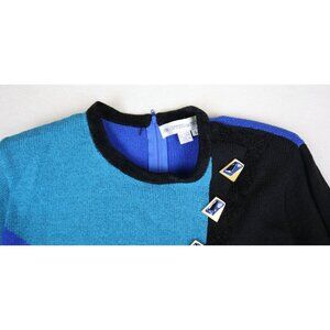 ANNE CRIMMINS FOR UMI COLLECTIONS - VINTAGE WOMEN'S BLUE PRINT SWEATER DRESS - L