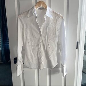 ANNE FONTAINE Gres Shirt White Collared Button Down Shirt With Micro Stripes 1