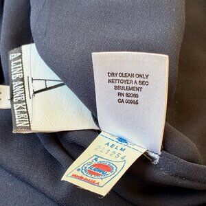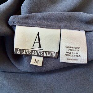 A LINE ANNE KLEIN vintage navy blue button up collared shirt. Ruffle Cuffs. Made in USA. Sheer fabric.