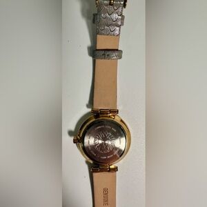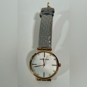 ANNE KLEIN AK GOLD TONE CRYSTAL LIGHT GREY GENUINE LEATHER BRACELET WATCH needs new battery