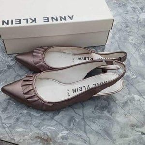 ANNE KLEIN AKELANORE SLINGBACK LOW HEEL SHOES PEWTER COLOR SIZE 7.5M GENTLY USED