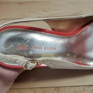 ANNE KLEIN AKELOISE Women's Peep Toe Sling Backs Coral & Nude Heels Size 7