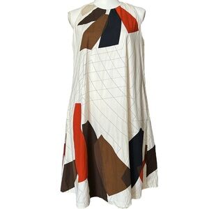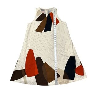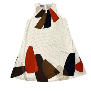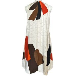 ANNE KLEIN A-Line Dress sz 6 Cream Brown Orange Geometric Cotton Sleeveless HTF!